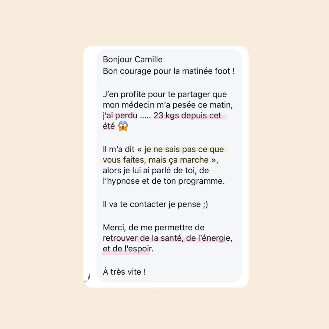De nombreuses personnes constatent une stabilisation ou une perte de poids naturelle car elles cessent de manger de manière émotionnelle ou compulsive et que nous travaillons sur les blocages inconscients qui freinent la perte de poids naturelle.
