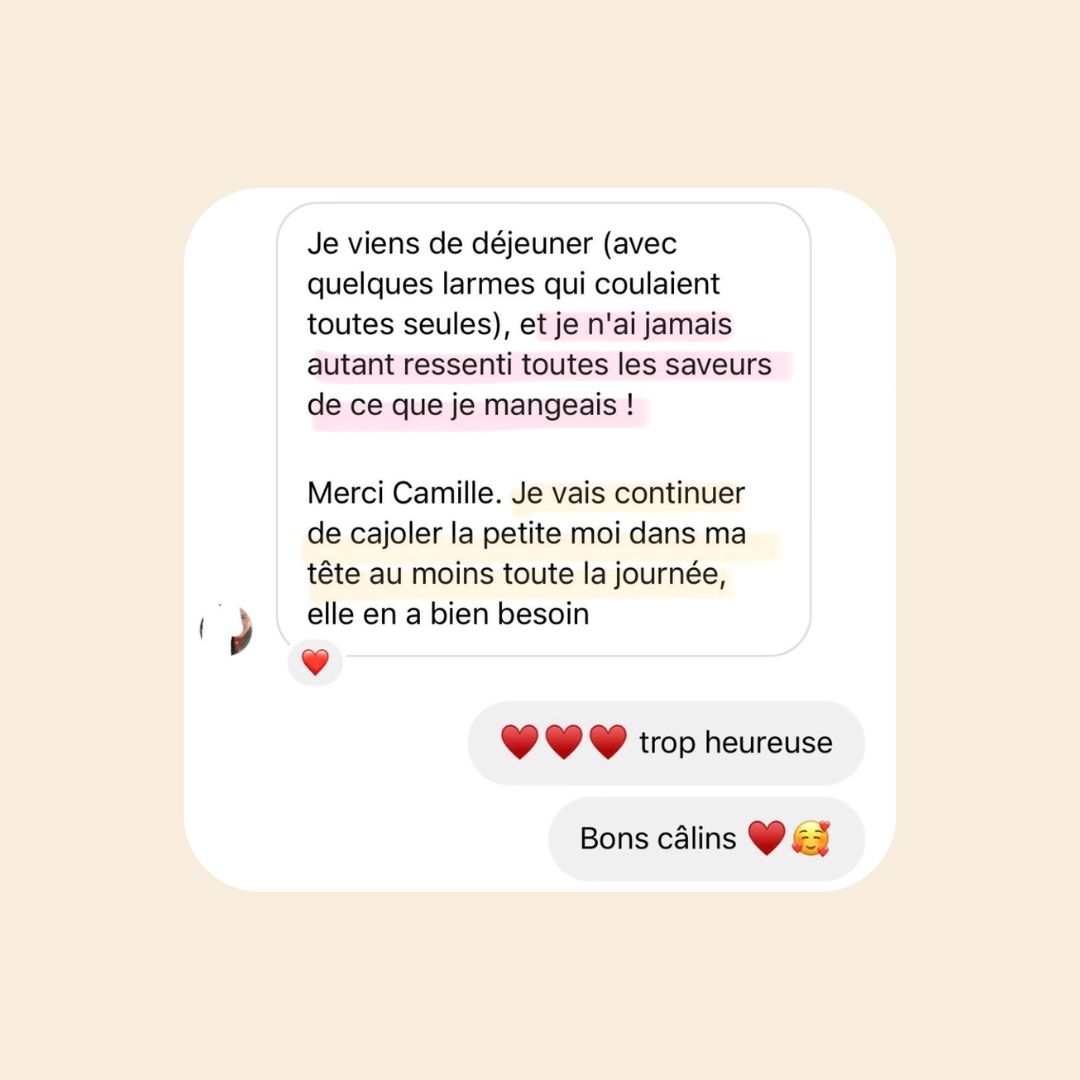 On va travailler sur ton système nerveux, tes émotions, ton estime de toi et les kilos qui protègent ton histoire, pour que ta relation à la nourriture change en profondeur.